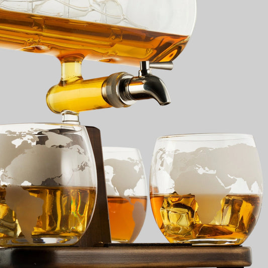 Vintage Ship Whiskey Decanter with Globe Glasses Set