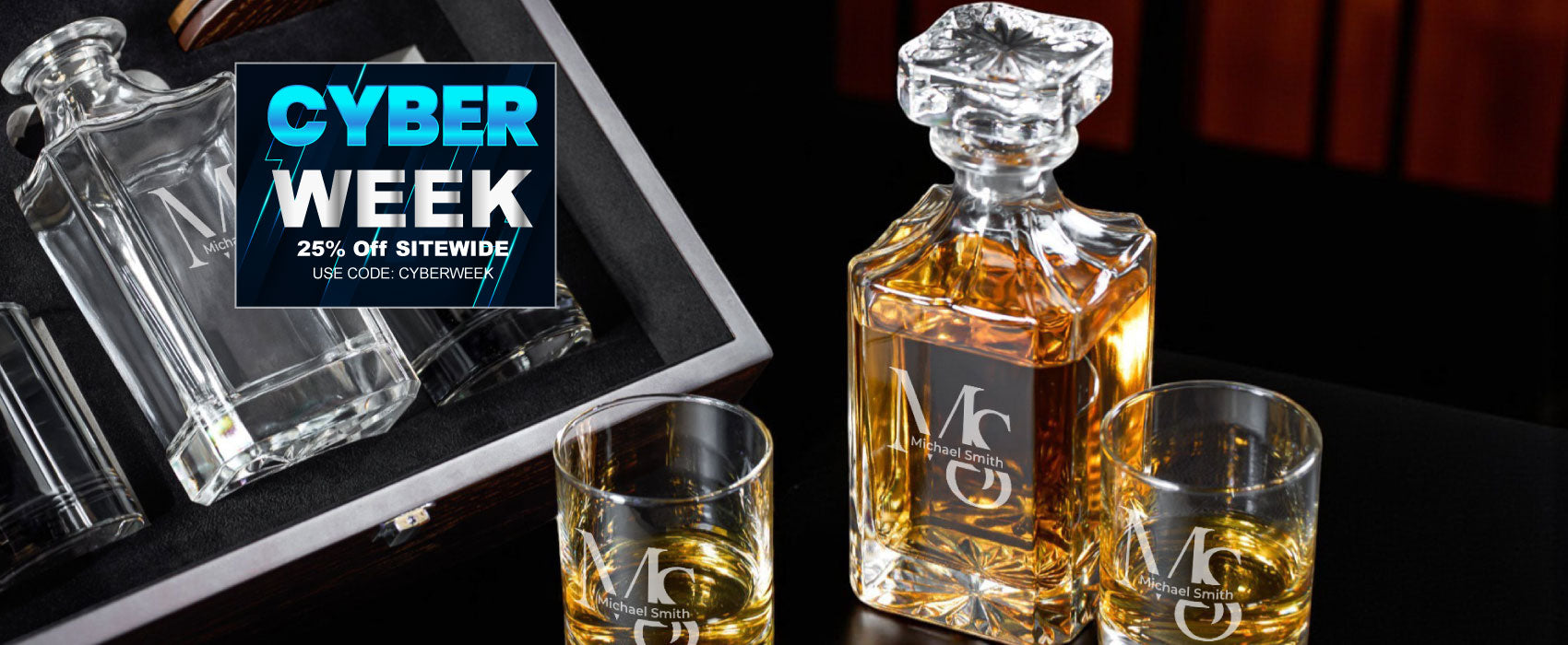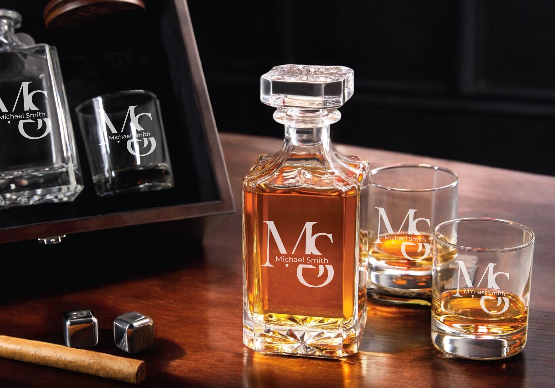 Monogram Personalized Classic Whiskey Decanter with Glasses Gift Set