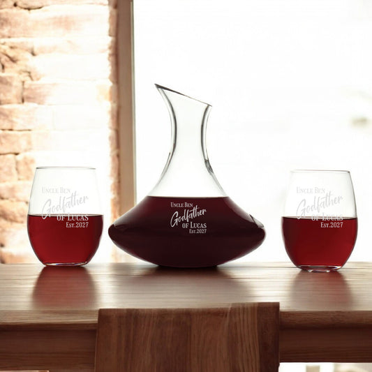 Godfather Personalized Wine Decanter with Stemless Wine Glass Set