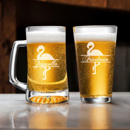 Flamingo Personalized Beer Mug and Wine Glass Gift Set
