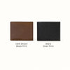 Personalized leather bi-fold wallet is designed for both style and practicality, featuring two compartments designed for bills, a convenient flip-up ID holder, and four slots for cards, along with a larger pocket located underneath the ID holder for additional storage. Also has a larger pocket under the flip up ID holder. The slightly pebbled finish enhances its refined look, while the option for engraved personalization makes it a thoughtful and unique gift.