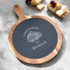 Elevate your next gathering with this impressive Personalized round serving board, meticulously crafted from rich acacia wood and natural slate. Its unique paddle-style handle not only adds a touch of elegance but also enhances functionality, making it ideal for serving cheeses, charcuterie, or delightful small bites at any celebration. Personalization transforms this serving board into a heartfelt gift or a standout piece in your hosting collection, ensuring every occasion is memorable and extraordinary. A perfect personalized gift for a housewarming, birthdays, or any special occasion.