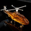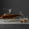 • Helicopter decanter designed with intricate details, including rotor blades and landing gear