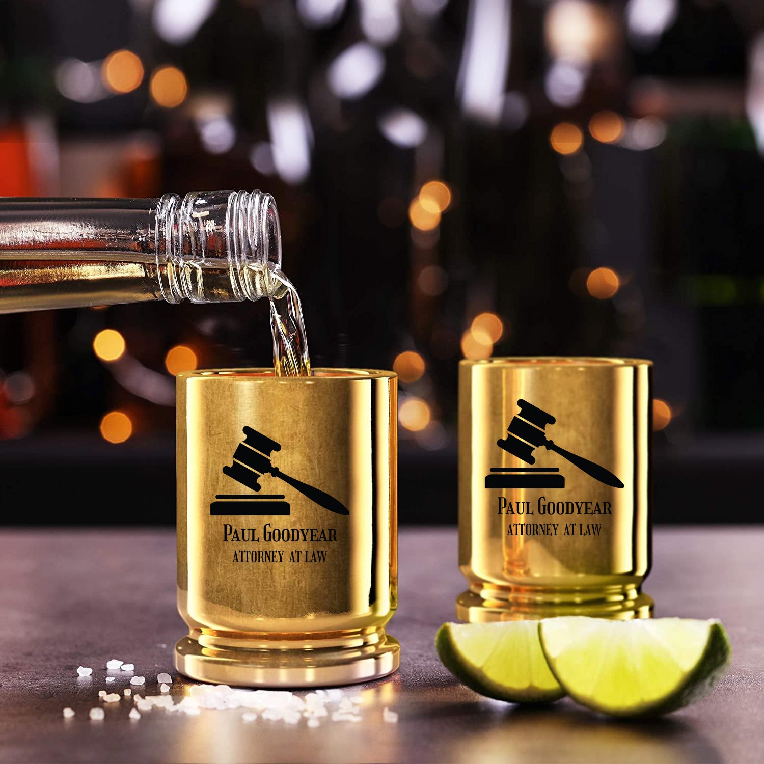 Lawyer Personalized .50 Caliber Brass Ceramic Shot Glasses, Set of 2