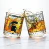 • 2 lowball rocks glasses with full-color MSU logo and authentic campus map