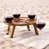 Elevate outdoor entertaining with this beautifully crafted wooden picnic wine holder, designed to keep your glasses steady and your moments effortless. Thoughtfully shaped and raised on sturdy legs, this compact wine table securely holds multiple wine glasses while adding a warm, natural touch to any setting.