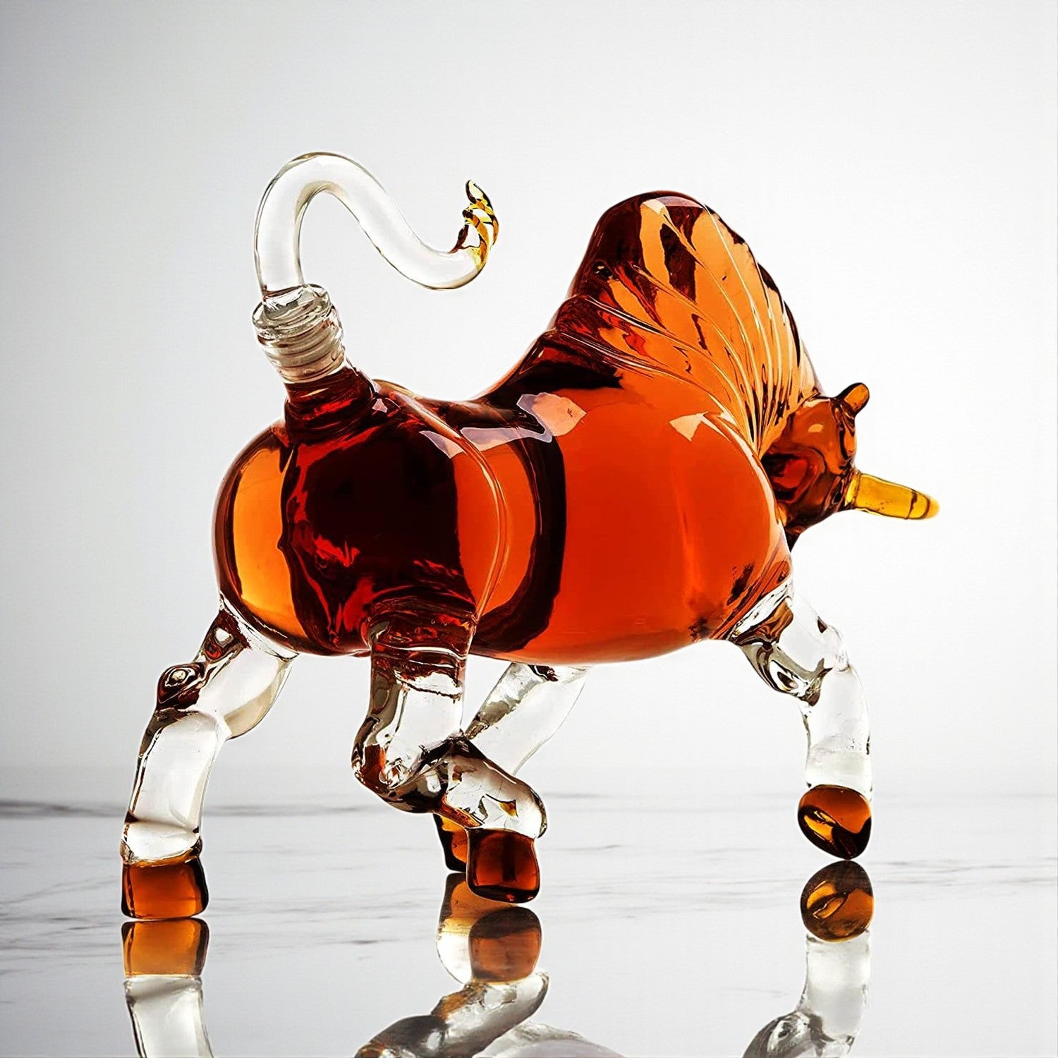 A stylish and functional addition to any home bar, this set features a sleek bull-shaped decanter that adds a refined touch of sophistication, paired with matching whiskey glasses designed to enhance the sipping experience. Crafted from high-quality glass or crystal, it includes a stopper to preserve the whiskey’s aroma and flavor. Whether you're entertaining or gifting, it brings together aesthetic elegance and practicality to elevate the experience.