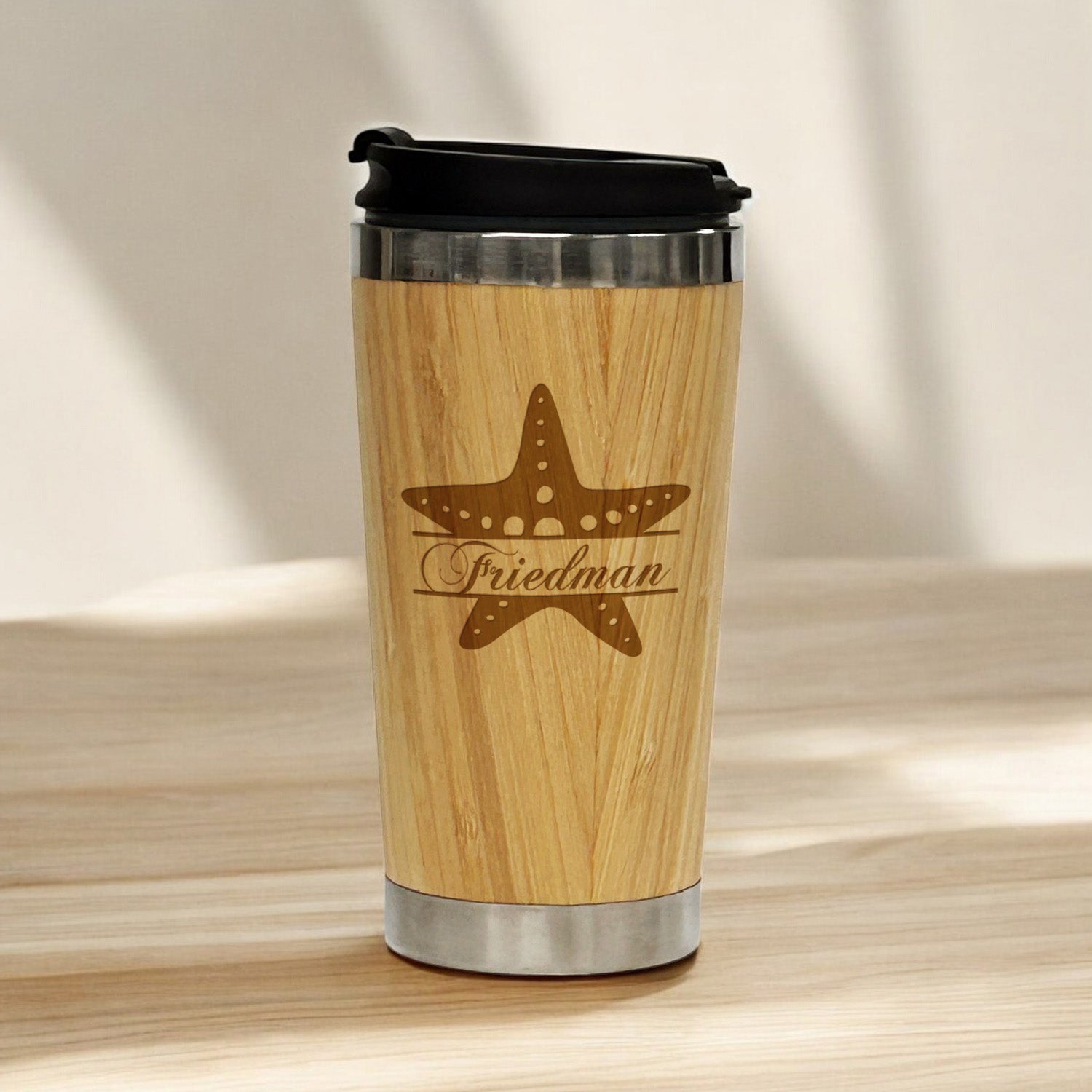 Starfish Personalized 15 oz Bamboo Stainless Steel Tumbler