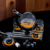 • WHISKEY DECANTER GIFT SET - includes globe whisky decanter, mahogany stain base, four 12 oz glasses, and 9 whiskey stones with bag & gift box.