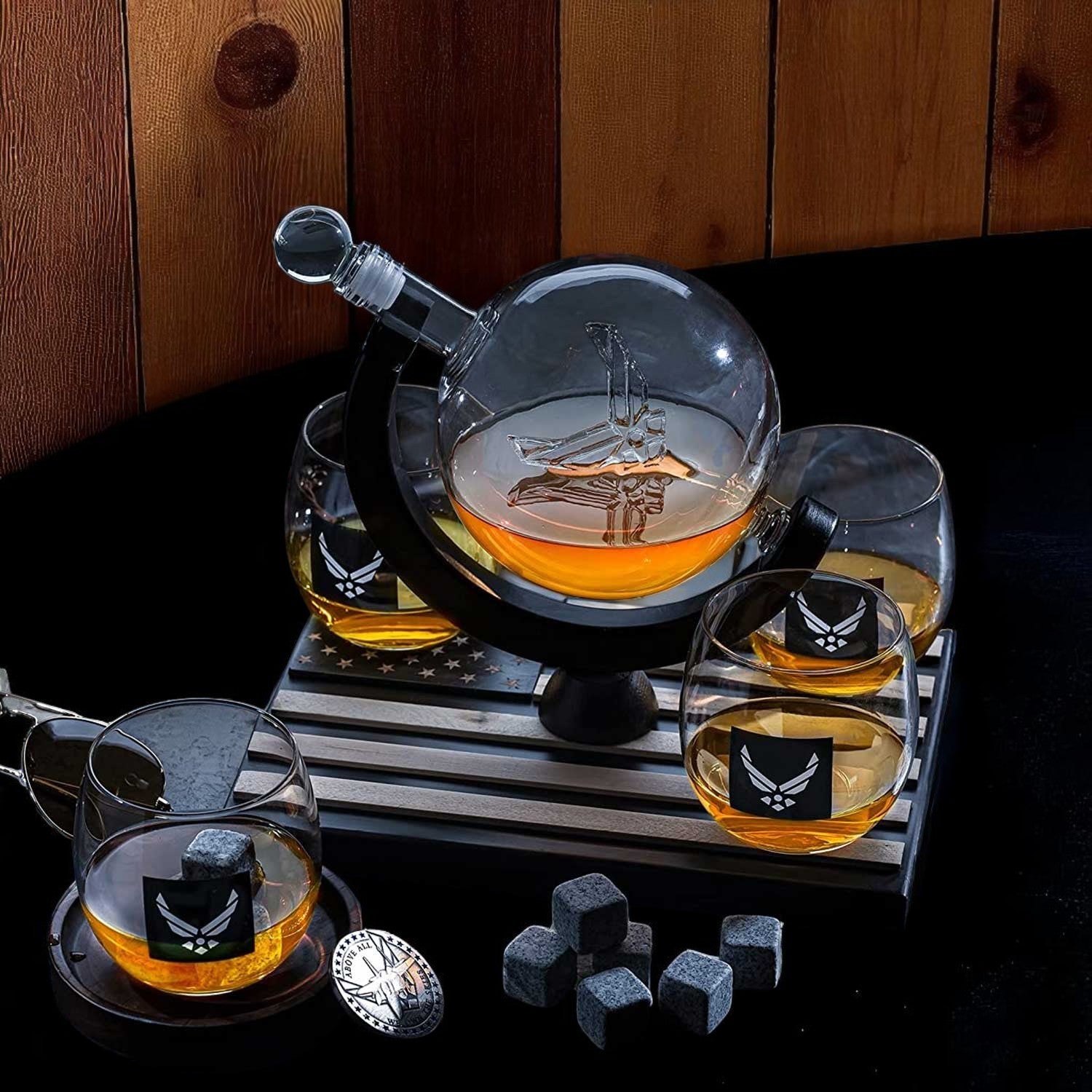 • GORGEOUS HANDCRAFTED ACCENTS - The globe whiskey decanters are handblown from 100% lead-free borosilicate glass with a finely crafted and precision etched United States Air Force Symbol on the inside.